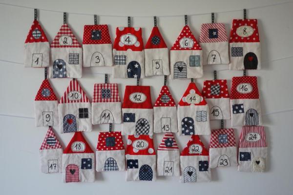 Wunderschöner Adventskalender in rot, weiß, grau Mustermix