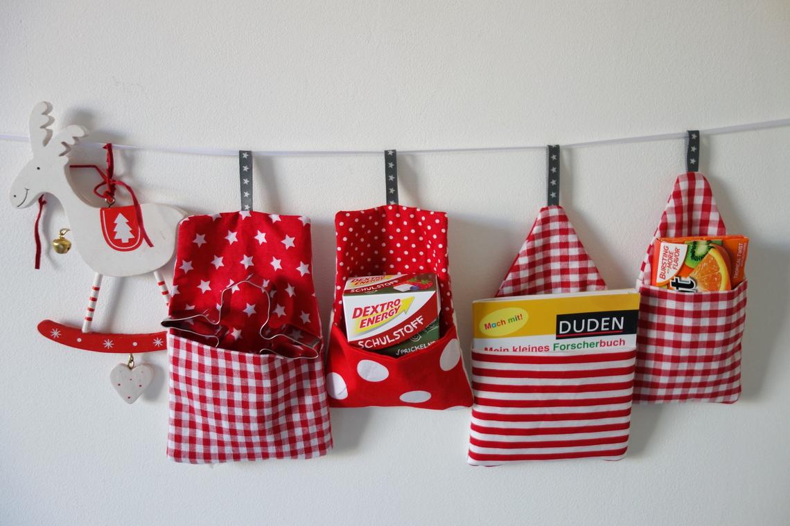 Wunderschöner Adventskalender in rot, weiß, grün Mustermix