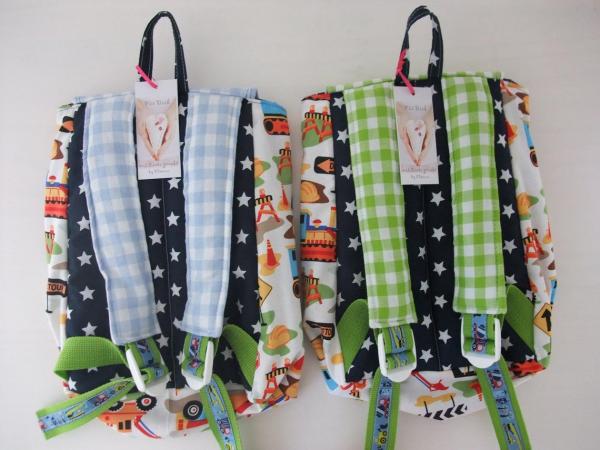 aus einem Designerstoff von Michael Miller gefertigt, mit tollem Baustellen-Motiv für kleine und große Baumeister